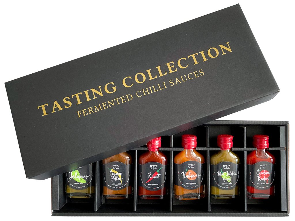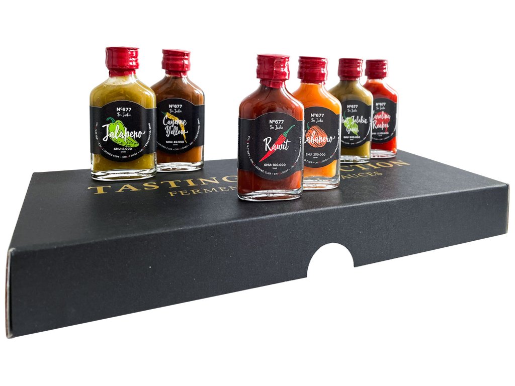 V balíčku najdete těchto šest typů fermentovaných omáček v degustačních sklenicích po 20ml