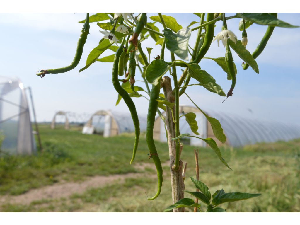 Tak tahle odrůda když zaplodí, tak srdce zaplesá. Velké množství červených plodů tak 0,5cm tenkých a klidně i 40cm dlouhých. Paráda. Výborná na sušení